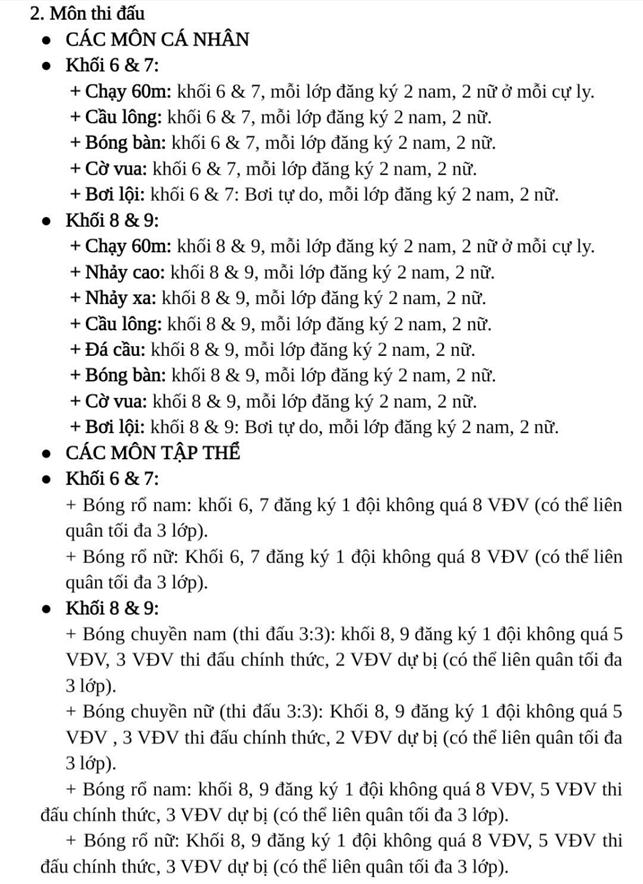 Giải Thể thao học sinh năm học 2025 – 2026 là giải đấu các môn thể thao học sinh cấp THCS. Tổ chức giải đấu, Ban Tổ chức nhằm tiếp tục duy trì và đẩy mạnh phong trào rèn luyện thể thao theo gương Bác Hồ vĩ đại. Bên cạnh đó, nhắc nhở học sinh thường xuyên luyện tập và thi đấu các môn thể thao để nâng cao thể lực và giáo dục nếp sống lành mạnh cho thanh, thiếu niên học sinh. Thông qua giải đấu, Nhà trường còn nhằm phát hiện và bồi dưỡng những học sinh có thành tích tốt để tuyển chọn, huấn luyện nâng cao, chuẩn bị lực lượng vận động viên tham gia Giải thể thao học sinh các cấp do phường và Thành  phố tổ chức trong năm học 2025 – 2026.