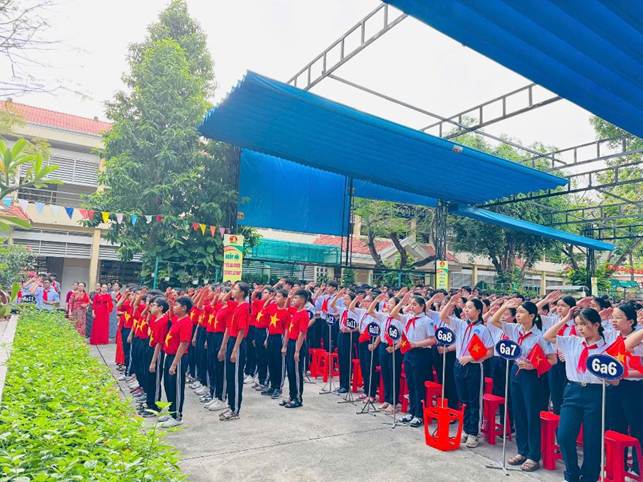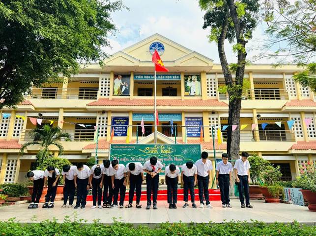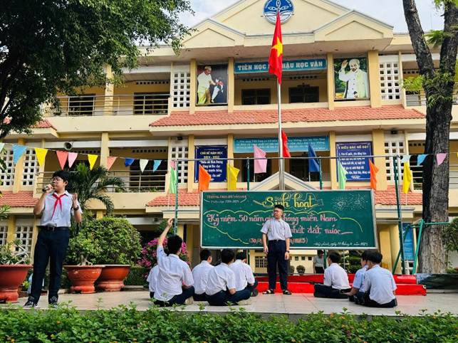 Hôm nay đây, đứng giữa lòng dân tộc, trong không khí tưng bừng cả nước hướng về chuẩn bị chào đón ngày đại lễ của non sông, được sự chỉ đạo của Chi bộ Trường THCS Chu Văn An, thành phố Thủ Dầu Một, trong tiết sinh hoạt đầu tuần vào ngày thứ 2-28-4-2025, Liên đội Trường THCS Chu Văn An tổ chức sinh hoạt kỷ niệm 50 năm ngày miền Nam hoàn toàn giải phóng và thống nhất đất nước (30/4/1975 – 30/4/2025) cho học sinh ở tất cả các khối lớp.