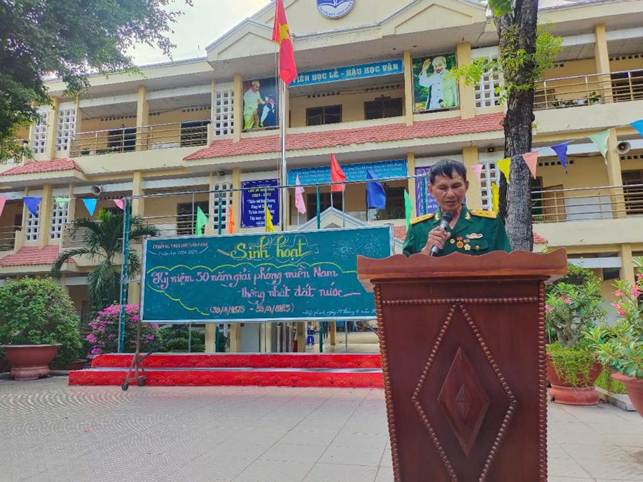 Buổi chiều, các em học sinh được nghe báo cáo viên là bác Nguyễn Tiến Song – Hội Cựu chiến binh phường Hiệp Thành ôn lại lịch sử hào hùng của cuộc kháng chiến chống Mỹ, những câu chuyện về người lính trong chiến tranh. Họ đã phải hi sinh rất nhiều mới dành lại độc lập, tự do cho dân tôc và cuộc sống ấm no, hòa bình, hạnh phúc như hôm nay.