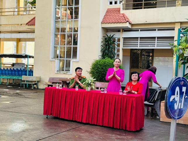 Liền sau Lễ kí kết là nội dung Tuyên truyền pháp luật Giao thông đường bộ năm học 2025 – 2026. Liên đội đã tổ chức cho các em theo hình thức “Rung chuông vàng” bằng hệ thống câu hỏi trắc nghiệm có liên quan đến Luật an toàn giao thông đường bộ. Các câu hỏi đa dạng, dễ gặp giúp học sinh có thêm kiến thức về an toàn giao thông. Từ đó các em tự biết cách bảo vệ bản thân khi tham gia giao thông.