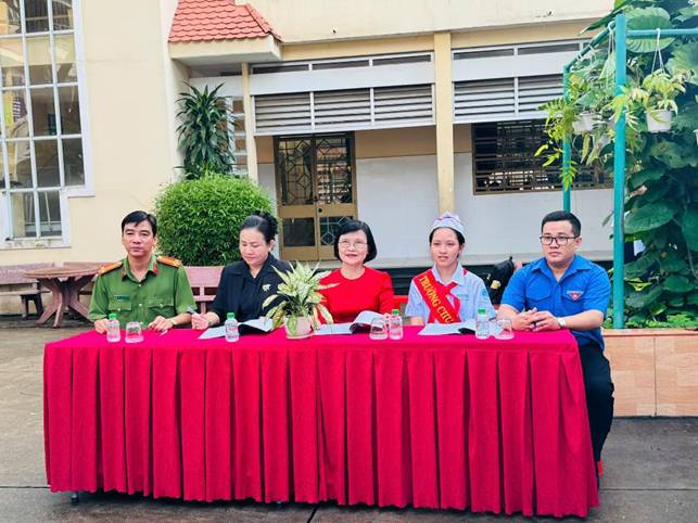 Dự Lễ Kí kết, về phía khách mời có ông Đỗ Hoàng Giang - Phó Trưởng Công an phường Thủ Dầu Một; bà Liêu Thị Bích Vân - Phó Trưởng ban Đại diện Cha mẹ học sinh của Trường; về phía Nhà trường có cô Diệp Thị Ngọc Dung – Bí thư Chi bộ - Hiệu trưởng Nhà trường, cô Lâm Thị Mỹ Hương – Phó Bí thư Chi bộ - Phó Hiệu trưởng Nhà trường; các thầy cô giáo bộ môn tổ Sử - Địa – GDCD, các giáo viên chủ nhiệm cùng các em học sinh trong trường.