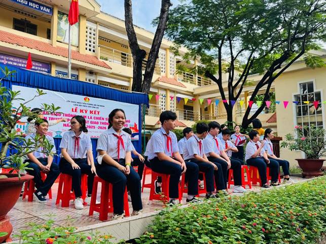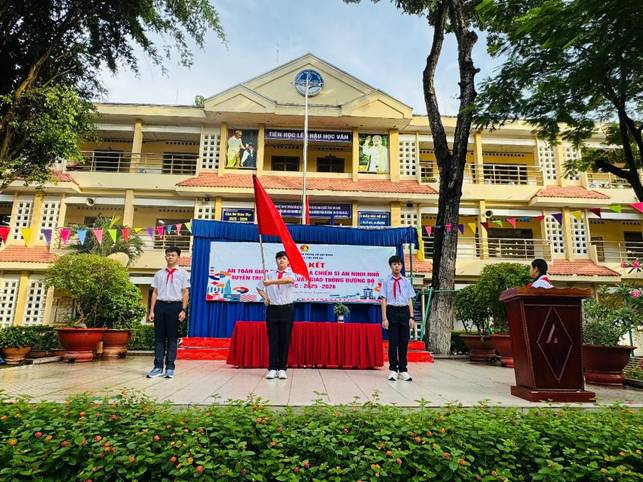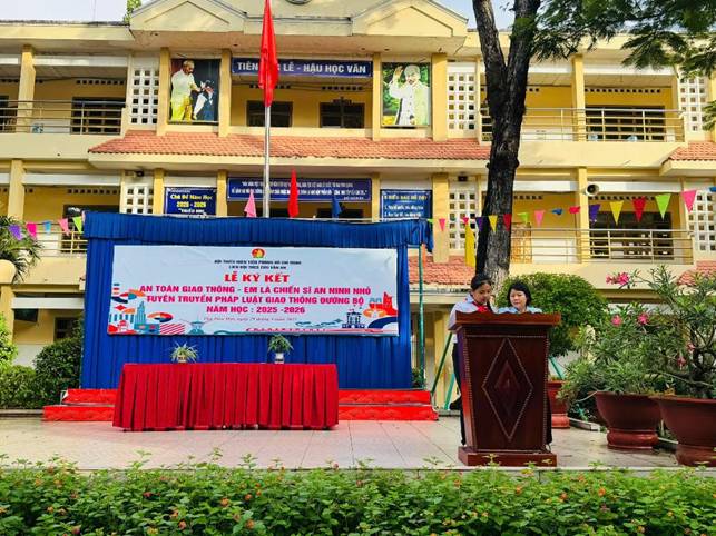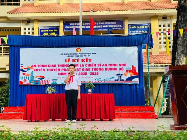 Thực hiện Kế hoạch Giáo dục năm hoc 2025 – 2026, sáng thứ 2-29-9-2025, Liên đội Trường THCS Chu Văn An, phường Thủ Dầu Một phối hợp với Tổ Sử - Địa – GDCD tổ chức Lễ Kí kết An toàn Giao thông “Em là chiến sĩ an ninh nhỏ” và Tuyên truyền pháp luật Giao thông đường bộ năm học 2025 – 2026 cho các em học sinh trong trường.