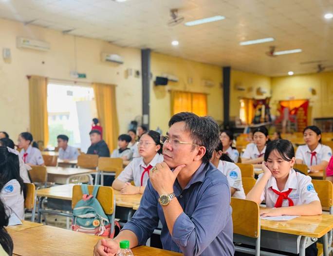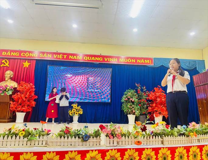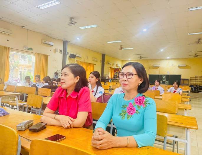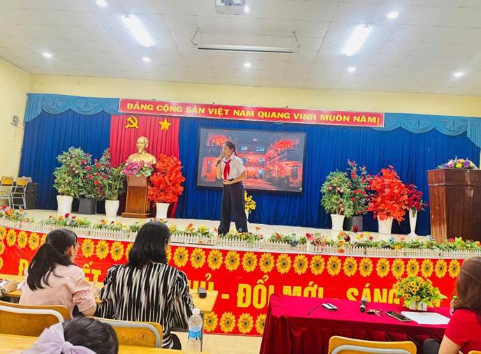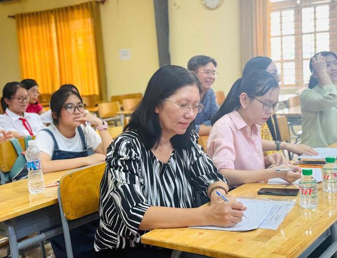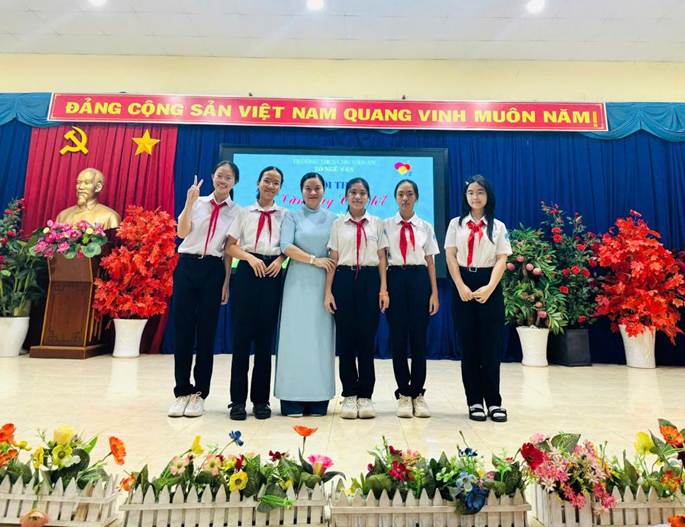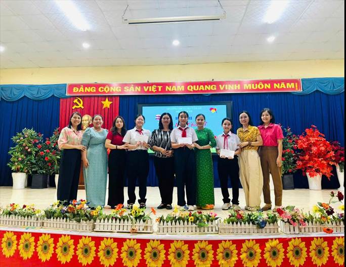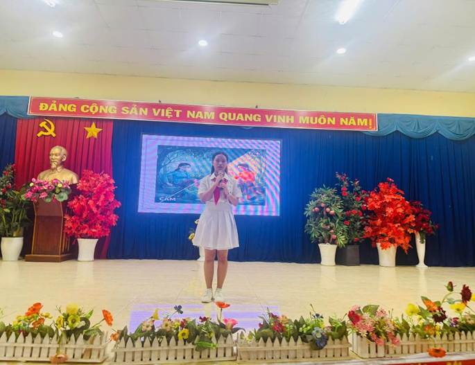 Về dự cuộc thi, có cô Diệp Thị Ngọc Dung – Bí thư Chi bộ - Hiệu trưởng Nhà trường, cô Nguyễn Thị Lan – Phó Hiệu trưởng Nhà trường, các thầy cô giáo tổ Ngữ văn và các em học sinh tham gia cuộc thi.