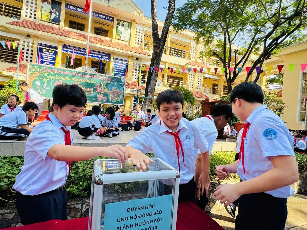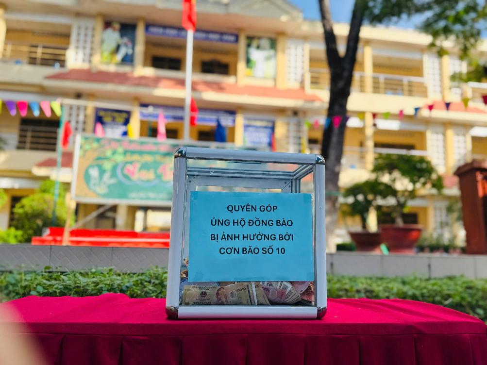 Liền sau  hoạt động Vui Tết Trung thu là hoạt động quyên góp, ủng hộ đồng bào bị ảnh hưởng bởi cơn bão số 10. Nhà trường xin chia sẻ những mất mát của người dân nơi đây; hi vọng sẽ khắc phục tốt hậu quả và sớm trở lại cuộc sống bình thường, ổn định.