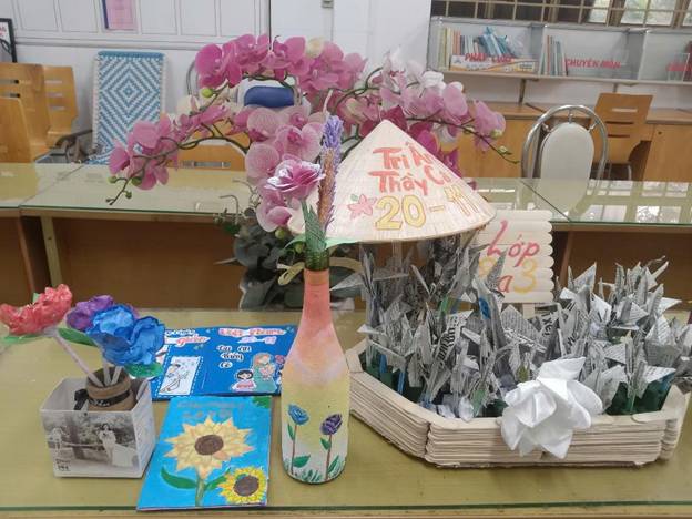 Các sản phẩm sáng tạo được làm từ các nguyên vật liệu sẵn có, các nguyên vật liệu tái chế mang tính thẩm mỹ và ứng dụng cao. Hơn thế, sản phẩm còn mang lại giá trị tinh thần thể hiện tình cảm, lòng biết ơn của học sinh giành cho thầy cô giáo.